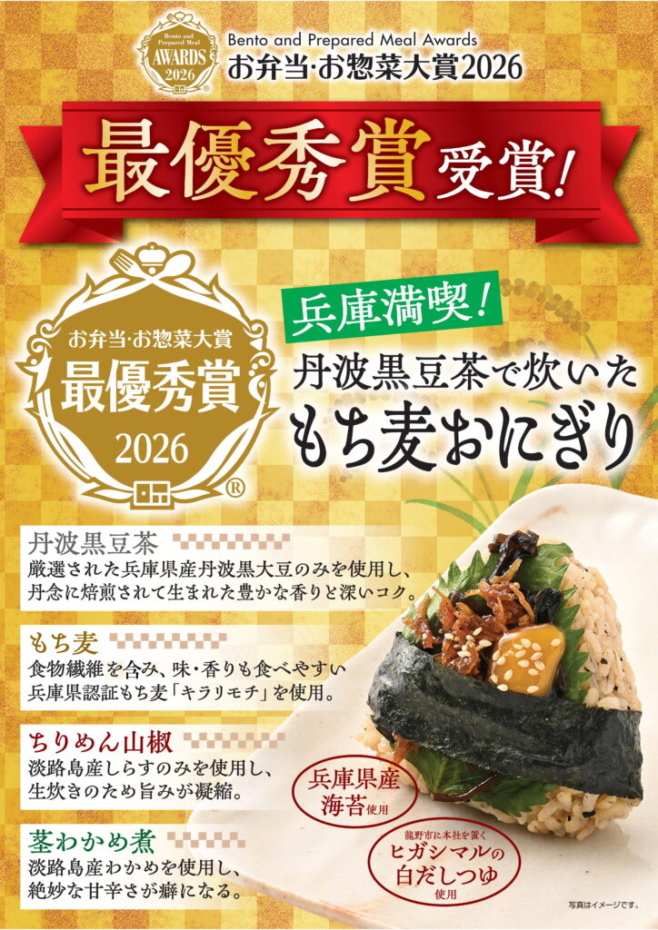 【お弁当・お惣菜大賞2026】「兵庫満喫!丹波黒豆茶で炊いたもち麦おにぎり」が...