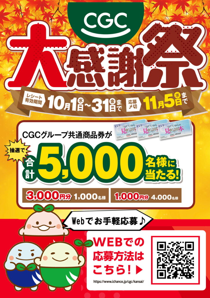 CGC商品のいずれか1品を含むレシート2,000円(税別)以上お買い上げレシートで応募できます。