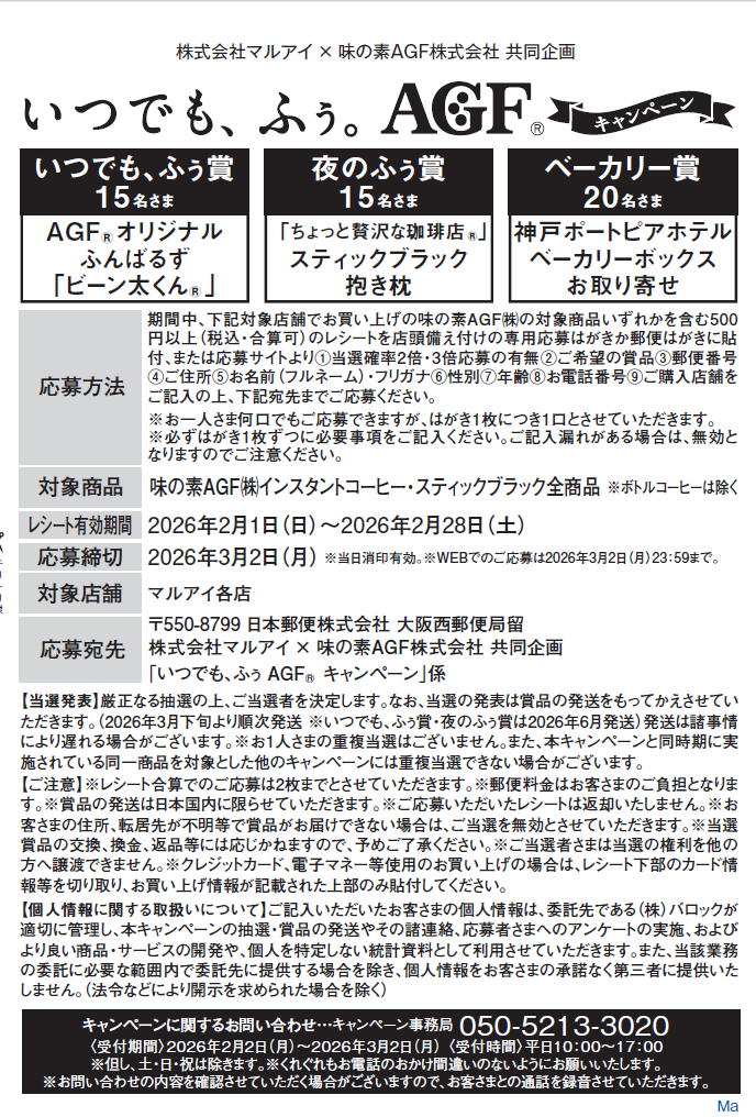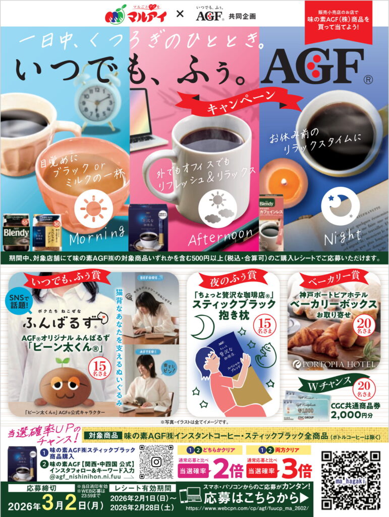 ②味の素AGF【関西・中四国 公式】インスタフォロー(@agf_nishinihon.ni.fuu)&キーワード入力